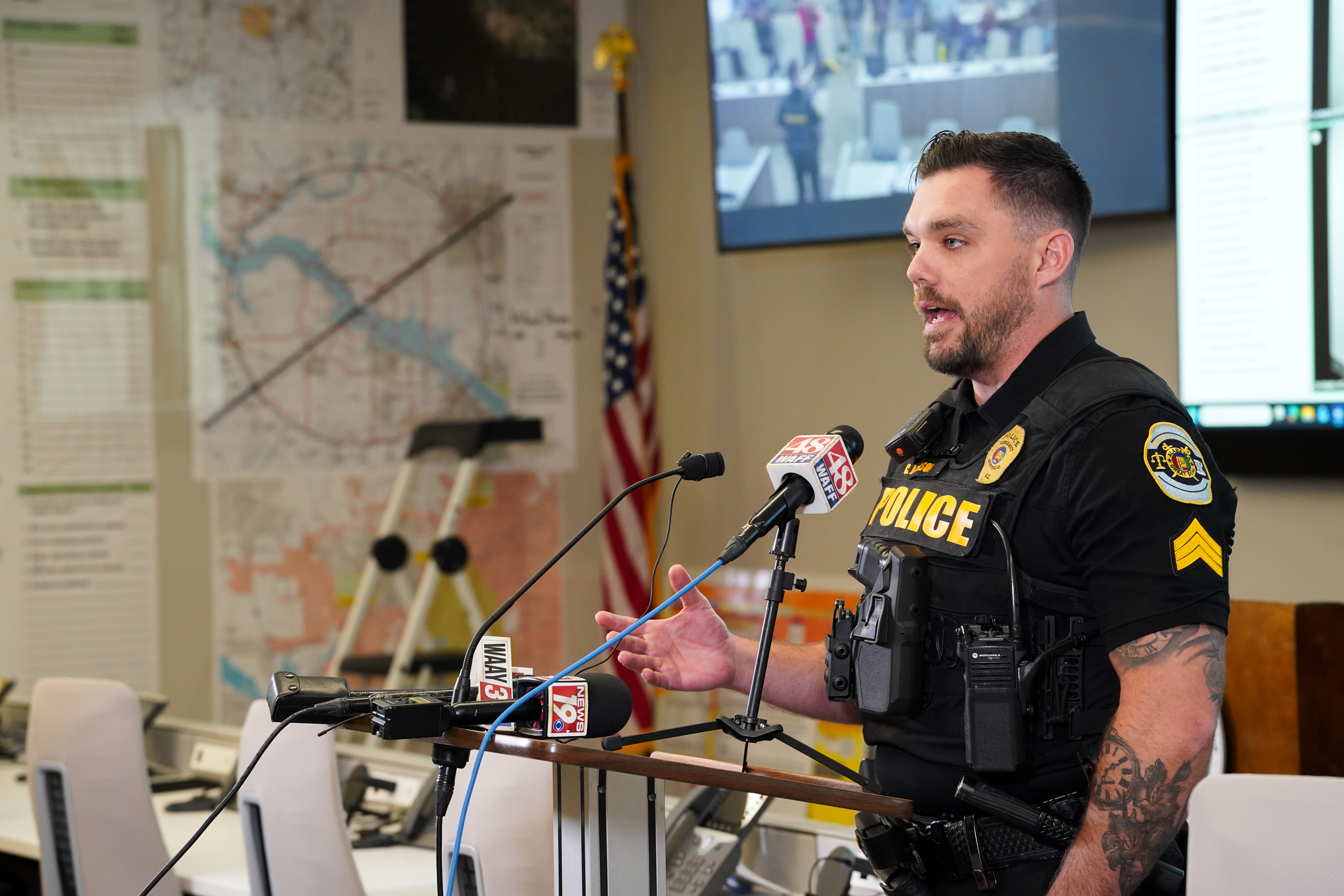 Sgt. Chris Jackson, Huntsville Police Public Information Officer, cautions the public to proceed with caution on the roads Monday morning. “Take it easy because when it does start to turn into ice, you’re not going to see it. And that’s when the wrecks are going to happen.”