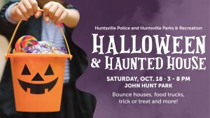 The Huntsville Police Department (HPD) and Huntsville Parks and Recreation invite the community to the fourth annual Halloween Party and Haunted House on Saturday, Oct. 18, from 3-8 p.m. at the Jaycee Building at John Hunt Park, 2200 Jaycee Way. Admission is free and open to all ages.