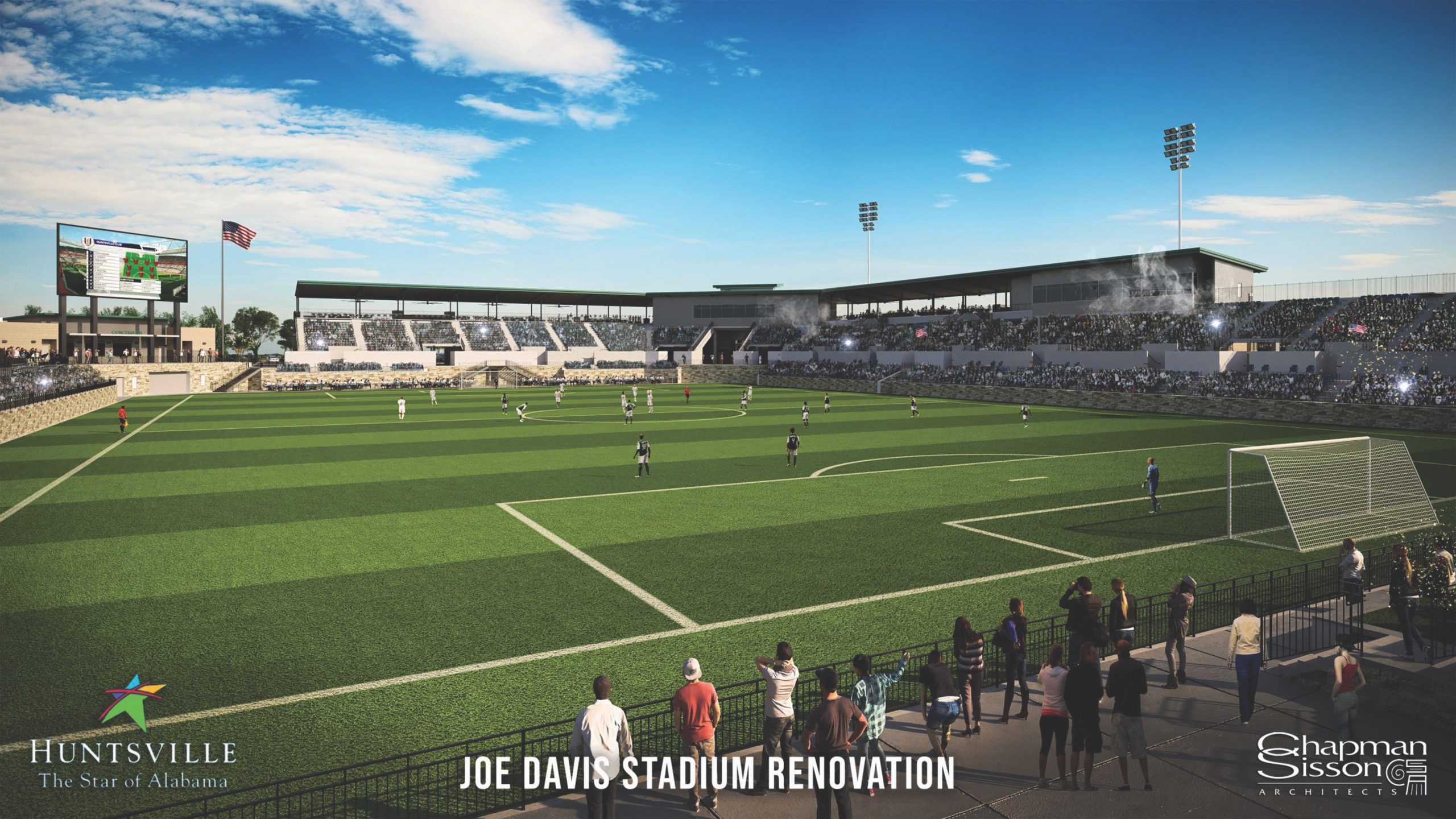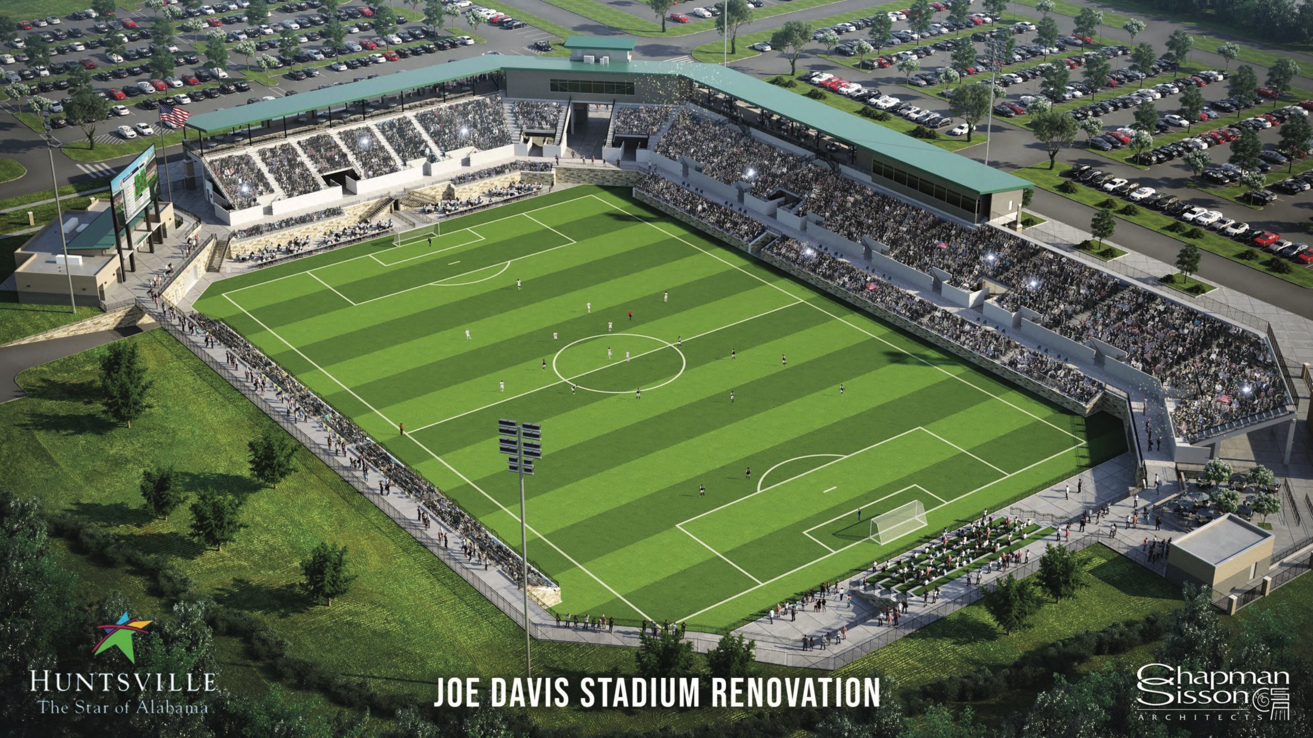 “An important aspect of our design process has been the advice received from coaches, band directors and TV broadcast teams from Huntsville City Schools, in addition to implementing the standards required for professional soccer as we pursue that opportunity,” said City Administrator John Hamilton. “We need a stadium that is smaller, approximately 6,000 seats, and provides amenities and entertainment value beyond the competition on the field.”